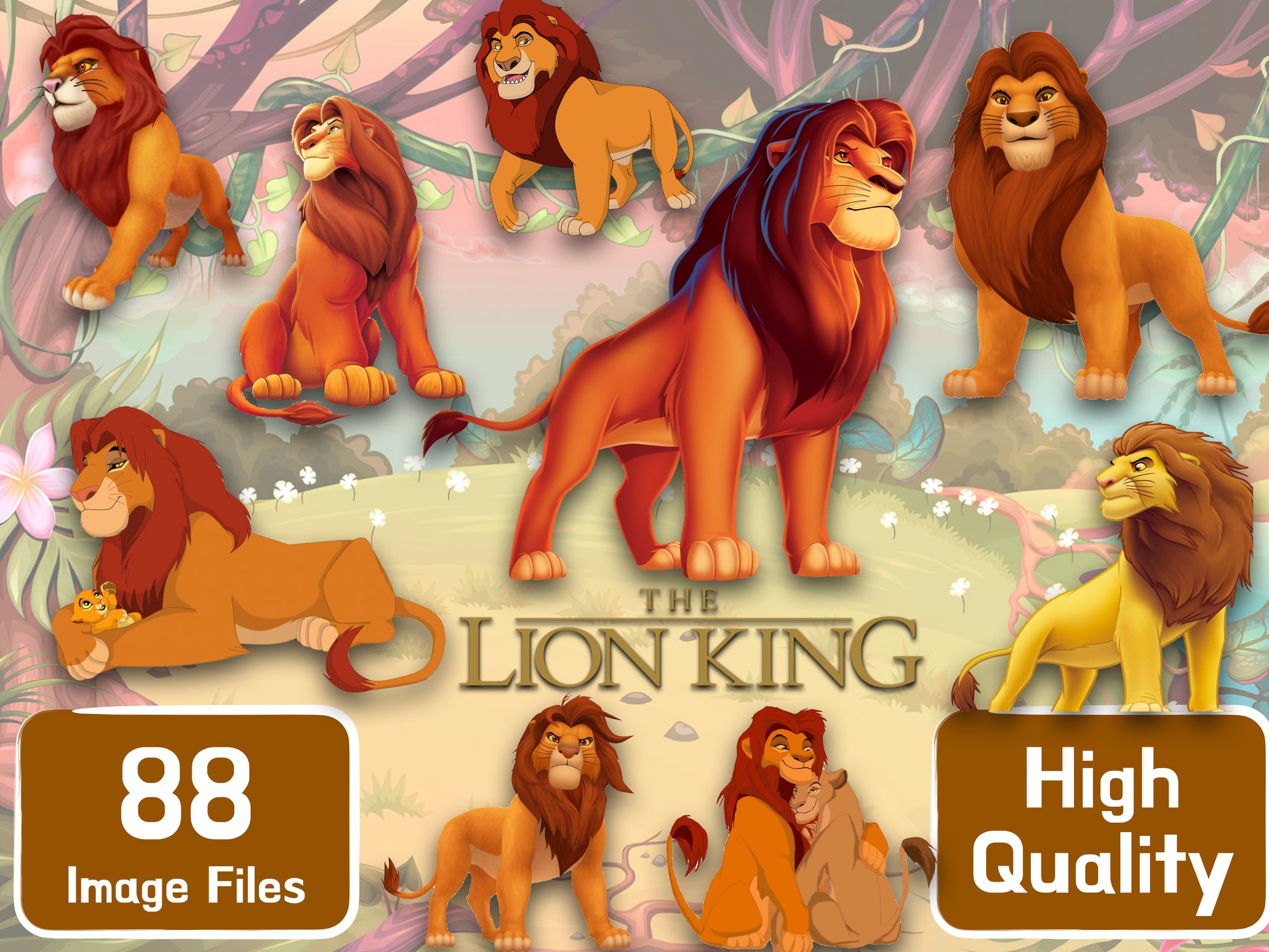 Customize your projects with the help of our Lion King clipart digital files! Our PNG, JPG, and SVG downloads feature Simba and other Disney favorites. Quickly and easily decorate your items just the way you want them.