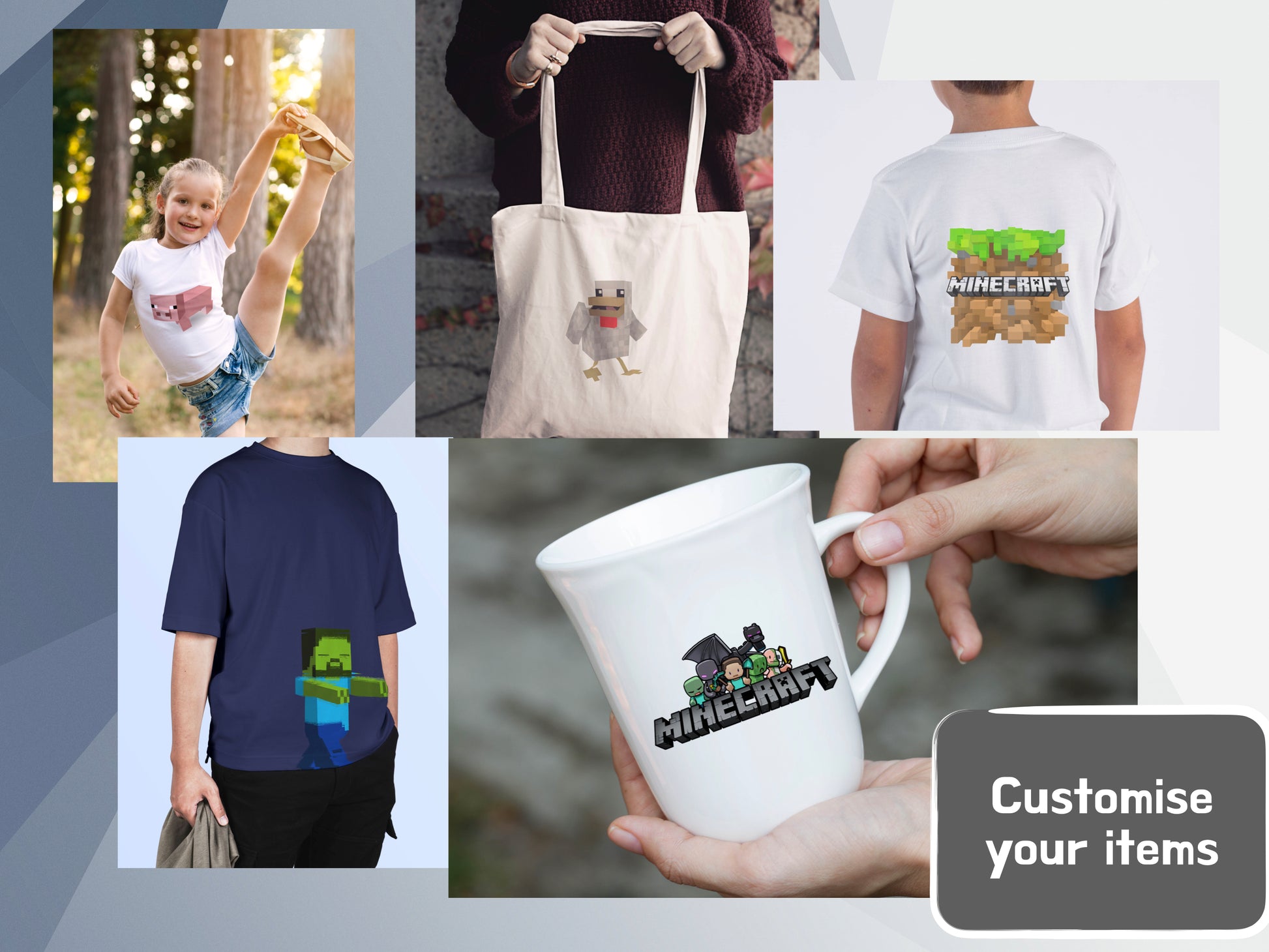 Let your creative Minecraft juices flow with this awesome collection of digital files! Our pack of Minecraft clipart to download contains everything you need to make your own t-shirt, mug, tote bag, stickers, and tons more. Trust us, you'll have zombie, chicken, and spider PNGs for days. Get mining for your next digital masterpiece!
