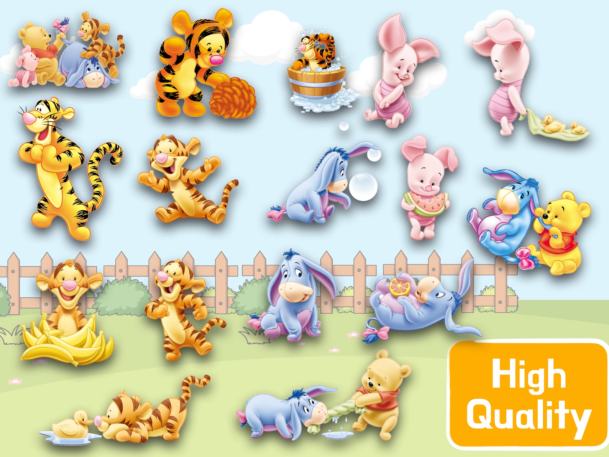 Tigger and Piglet and Eeyore and oh, my! Bring the classic fun of Winnie the Pooh to life with this set of digital downloads - all in ready-to-use SVG, PNG, JPG, and Photoshop file formats. Make your projects pop with these forever-adorable Disney Cartoon characters and never be without a sketch of Winnie and friends! Downloads include stickers, so you can add Honey to any project! (Yum!)